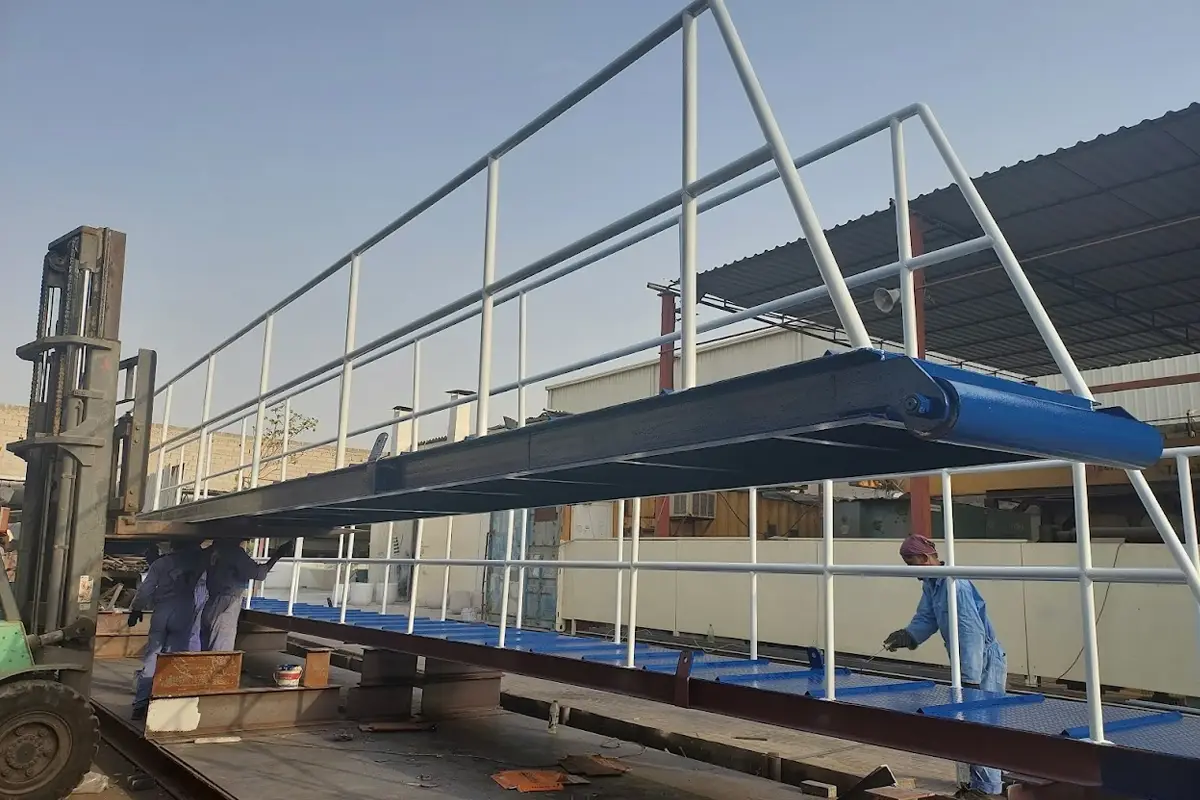 V TECH has been a trusted fabrication partner for marine and naval infrastructure, delivering a range of durable, corrosion-resistant components engineered for coastal and offshore environments. Our scope of work includes marine gangways, bollards, custom platforms, and specialized structural elements designed to meet the rigorous standards of maritime operations. These projects reflect our ability to produce high-performance steel structures for ports, shipyards, and defense-related facilities across the GCC.